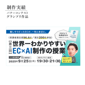 バナー・サムネイル・ECサイト画像などお客様の興味関心を引き出し、クリックというアクションをしてもらうための大切なツール。お客さ様のイメージを大切にヒヤリングし、”3秒で伝わるデザイン”を制作いたします。
